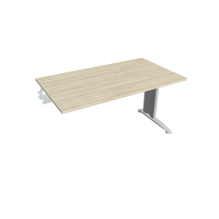 Kancelárský nábytok Flex sa vyznačuje elegantným dizajnom a originalitou technického riešenia. Pracovné dosky s optimálnými rozmermi a tvarom využívajú ergonomicky a efektívne celú pracovnú plochu. Pracovná doska stola má hrúbku 25 mm a je olepená 2mm ABS hranou, ktorá stoly pomáha chrániť pred poškodením. O káble od PC alebo stolovej lampy, sa postará praktická priechodka, ktorá káble jednoducho zvedie pod dosku, kde si s nimi poradia šikovne skonštruované držiaky. Moderné kovové nohy vás oslovia súčasným dizajnom a funkčnosťou. Prepojené sú teleskopickým káblovým kanálom, vďaka ktorému je stôl dokonale stabilný aj bez pracovnej dosky. Okrem toho slúži kanál aj ako elegantný úkryt pre vedenie všetkej kabeláže vášho PC, ktorá je potom pod plastovým krytom kovovej nohy zvedená k podlahe. Tento spôsob vychádza v ústrety aktuálnym trendom kompletne skrytej kabeláže.
