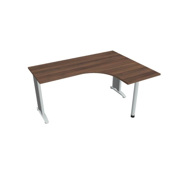 Pracovný stôl Flex, ergo, ľavý, 160x75,5x120 (60x60) cm, orech/kov