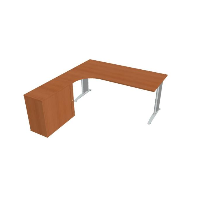 Kancelárský nábytok Flex sa vyznačuje elegantným dizajnom a originalitou technického riešenia. Pracovné dosky s optimálnými rozmermi a tvarom využívajú ergonomicky a efektívne celú pracovnú plochu. Pracovná doska stola má hrúbku 25 mm a je olepená 2mm ABS hranou, ktorá stoly pomáha chrániť pred poškodením. O káble od PC alebo stolovej lampy, sa postará praktická priechodka, ktorá káble jednoducho zvedie pod dosku, kde si s nimi poradia šikovne skonštruované držiaky. Moderné kovové nohy vás oslovia súčasným dizajnom a funkčnosťou. Prepojené sú teleskopickým káblovým kanálom, vďaka ktorému je stôl dokonale stabilný aj bez pracovnej dosky. Okrem toho slúži kanál aj ako elegantný úkryt pre vedenie všetkej kabeláže vášho PC, ktorá je potom pod plastovým krytom kovovej nohy zvedená k podlahe. Tento spôsob vychádza v ústrety aktuálnym trendom kompletne skrytej kabeláže.