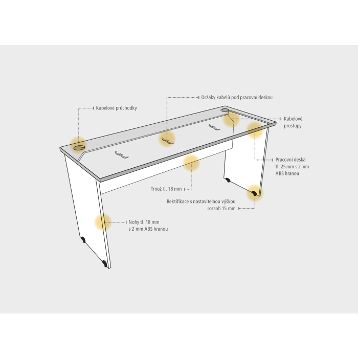 Kancelárske stoly GATE poskytujú nadčasový dizajn a výnimočnú ergonómiu. Využitie nájdu, spolu s ostatným radami kancelárskeho nábytku HOBIS, v akejkoľvek kancelárii. Pracovné dosky kancelárskych stolov rady GATE majú hrúbku 25 mm a sú vybavené 2 mm ABS hranou, ktorá pomáha stoly chrániť pred poškodením. Nohy sú vyrobené z plnej dosky hrúbky 18 mm a vybavené výškovo nastaviteľnou rektifikáciou. Stoly sú tvarované tak, aby ste mohli maximálne využiť plochu stola, pre vedenie káblov od PC sú určené káblové priechodky. Pre zaistenie čo možno najvyššieho komfortu sú v ponuke aj rohové kancelárske stoly s ergonomicky tvarovanými pracovnými doskami. Súčasťou ponuky sú aj rokovacie stoly do zasadačiek. K pracovným stolom ponúkame celkom 106 prvkov, ktoré vďaka jednoduchému spojovaciemu systému môžete rôzne kombinovať. Kancelárske stoly, skrine, kontajnery a doplnky môžete vyberať z ponuky kancelárskeho nábytku HOBIS.Efektivitu dopravy do Vašej kancelárie zaisťujú dodávky jednotlivých dielov stola, ktoré sú bezpečne zabalené. Súčasťou každého balenia je tiež prehľadný návod. Na stoly GATE sa vzťahuje záruka 5 rokov.