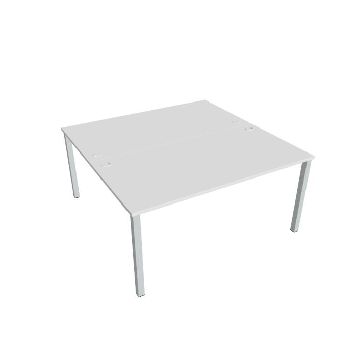 Zdvojený pracovný stôl rovný. Doska stola z kvalitného lamina. Pevná kovová konštrukcia podnožia zo štvorcových profilov 50 x 50 mm je tvorená kompaktnými pármi nôh, ktoré sú spojené priečnikmi. Výškovo nastaviteľná rektifikácia zaisťuje možnosť dorovnania prípadnej nerovnosti podlahy až o 1,5 cm. Stolová pracovná doska z LTD má hrúbku 25 mm a je zakončená 2mm hranou ABS, ktorá ju chráni pred poškodením. Samozrejmosťou sú káblové priechodky a systém pre zavesenie káblov pod stolovou doskou. Možnosť objednania bieleho či sivého prevedenia podnožia. Stolové doplnky, kontajnery a skrine vyberajte z ponuky kancelárskeho nábytku Hobis. Aby sa zásielka dostala v poriadku až do Vašej kancelárie, dodávame stoly demontované v niekoľkých samostatných a bezpečne zabalených škatuliach. Súčasťou každého balenia je tiež prehľadný návod. Na stoly UNI sa vzťahuje záruka 5 rokov. Farebnosť je ilustratívna.