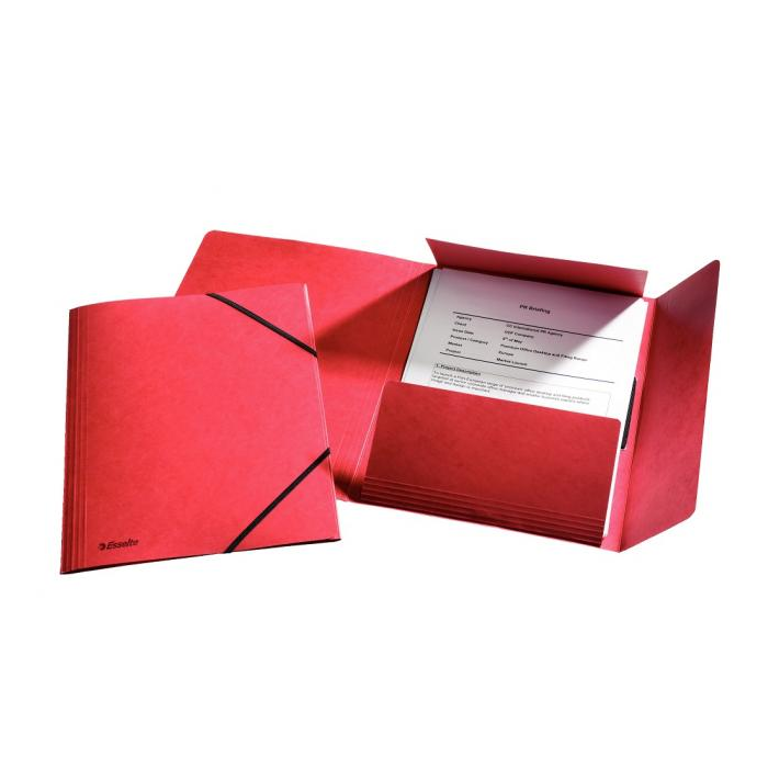 Obal A4 s tromi chlopňami a čiernou gumičkou. Materiál na dotyk príjemný prešpán. Prelisy na chlopniach a chrbte zvyšujú kapacitu obalu. Väčšie balenie 10 ks.