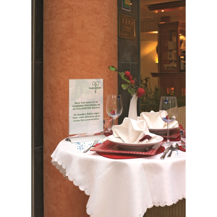 Stojan vhodný na prezentáciu ľubovoľných informácií s dobrou stabilitou. Vrchná časť vyrobená z kvalitného číreho akrylu, elegantný podstavec z hlíníka.