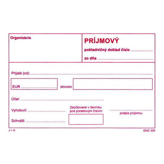 Príjmový pokladničný doklad bez DPH, samoprepis, formát A6, blok 100 listov.