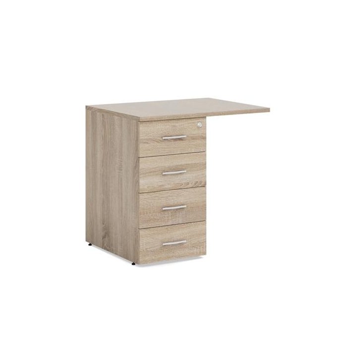 Prístavný kontajner BASIC, 4-zásuvkový so zámkom, 80x76x60cm, dub Sonoma