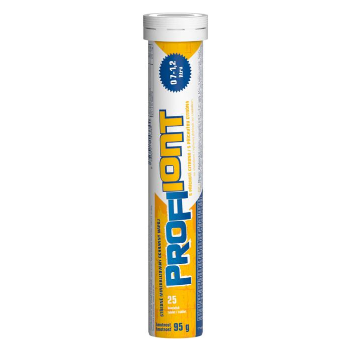 Ochranný iónový nápoj NAJVYŠŠIE MINERALIZAČNÉ TRIEDY; Novo vo forme šumivej tablety, na prípravu 0,7 - 1,2 l nápoja ; Skvelá citrónová príchuť; Neobsahuje aspartám Profi Iont vo forme šumivých tabliet