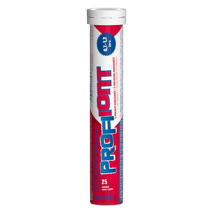 Ochranný iónový nápoj NAJVYŠŠIE MINERALIZAČNÉ TRIEDY; Novo vo forme šumivej tablety, na prípravu 0,7 - 1,2 l nápoja ; Skvelá pomarančová príchuť; Neobsahuje aspartamProfi Iont vo forme šumivých tabliet