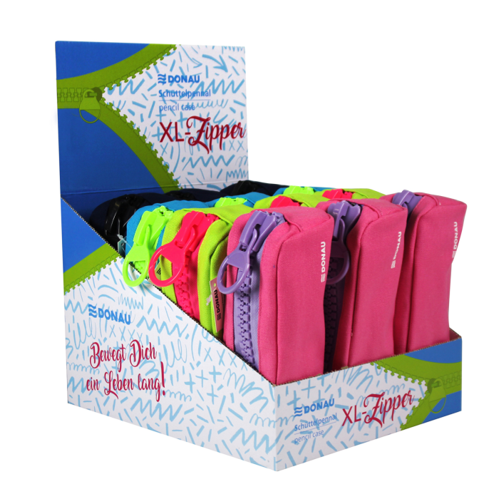 Puzdro na perá DONAU s veľkým zipsom, mix farieb, displej 12 ks