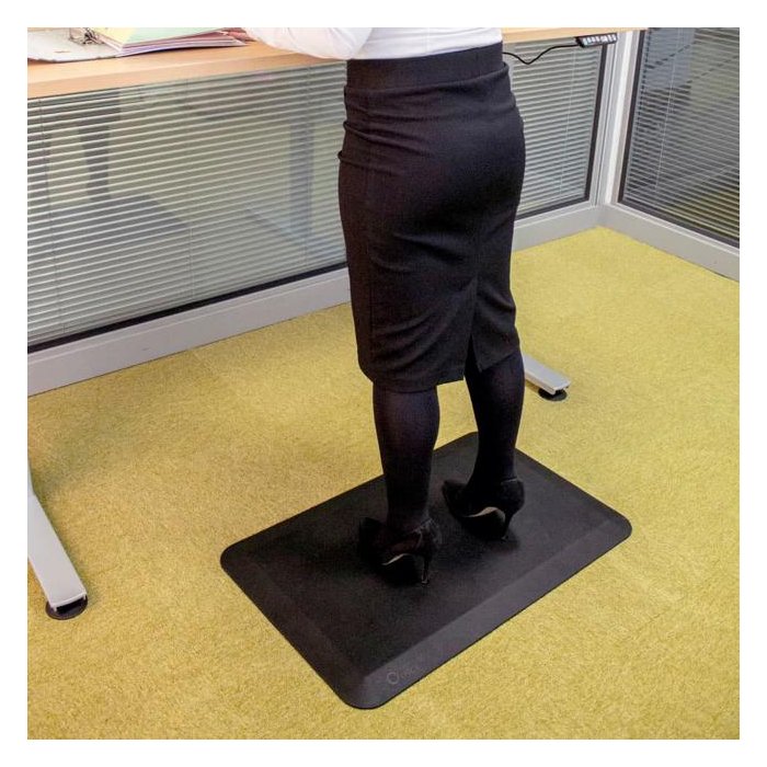 Pracovná rohož z polyuretánu, pružného materiálu, ktorý je známy svojou trvanlivosťou. Starostlivo navrhnutá rohož s penou s vysokou hustotou poskytuje správnu rovnováhu medzi odpružením a oporou nôh pre užívateľov polohovateľných stolov. Textúrová spodná strana so skosenými okrajmi znižuje riziko zakopnutia, pričom tvorí rovný povrch s podlahou. Vhodná do väčšiny kancelárskych pracovísk. Výška 16 mm. Rozmery 50 × 80 cm.