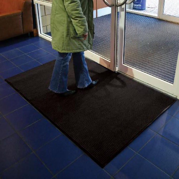 Rohož s trvanlivým rebrovaným povrchom, ktorý vytvára `kanály` na zachytávanie špiny a kamienkov a zachycuje vlhkosť z topánok. Výška rohože 9 mm. Materiál 100% polypropylén so spodnou stranou z PVC. Rozmery: 90x150 cm Farba: čierna