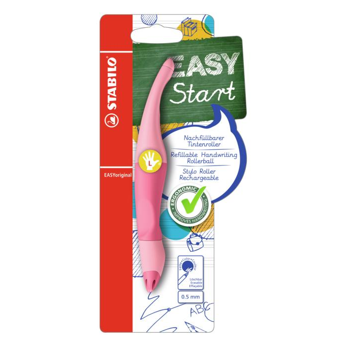 Ergonomicky tvarovaný roller, ktorý píše ako plniace pero. Prevedenie pre ľavákov. Vhodný pre deti, ktoré sa učia písať a školákov od 6 rokov. Uvoľnené držanie pomáha proti únave svalstva ruky a bolestiam pri písaní. Úchyt z nekĺzavého materiálu, nový hrot s každou novou náplňou. Plnený zmizíkovateľným atramentom modrej farby.