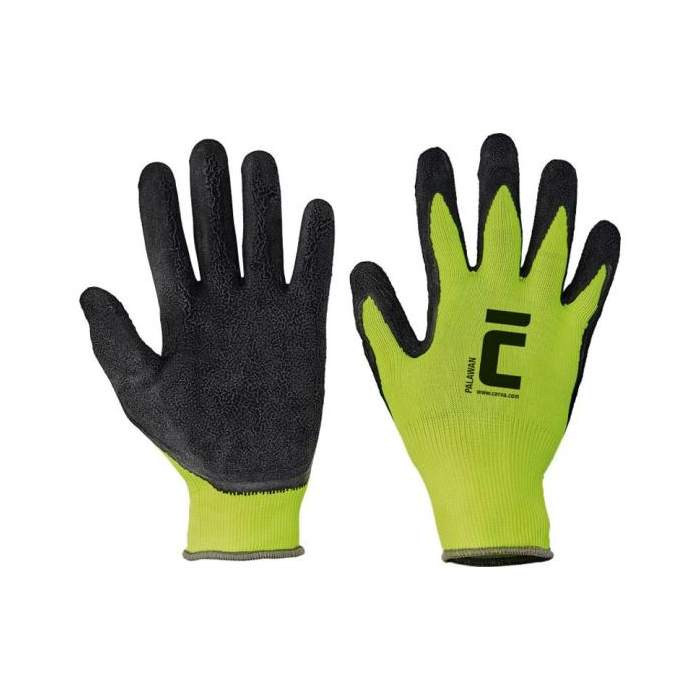 Rukavice nylonové, latexové PALAWAN, čierno/zelené, veľ. 9/L