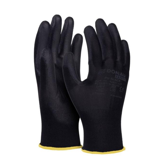 Rukavice pletené, polomáčané DONAU SAFETY PU kat. II čierne veľ. 10