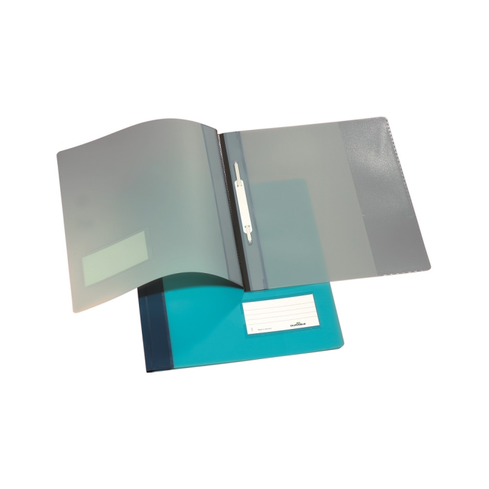 Elegantný rýchloviazač z farebného PVC a plastovým zakladacím viazačom. Priehľadné vrecko vo formáte vizitky (90 x 57 mm) na prednom obale a vnútorné vrecko na zadnej strane. Extra široký, vhodný aj na euroobaly. Väčšie balenie 25 ks. V kombinácii so zakladacím pásikom obj. kód DU2996 02 je možné archivovať rýchloviazač v zakladači.