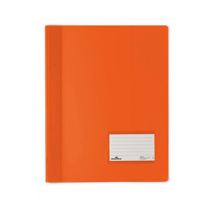 Elegantný rýchloviazač z farebného PVC a plastovým zakladacím viazačom. Priehľadné vrecko vo formáte vizitky (90 x 57 mm) na prednom obale a vnútorné vrecko na zadnej strane. Extra široký, vhodný aj na euroobaly. Väčšie balenie 25 ks. V kombinácii so zakladacím pásikom obj. kód DU2996 02 je možné archivovať rýchloviazač v zakladači. Farba: oranžová