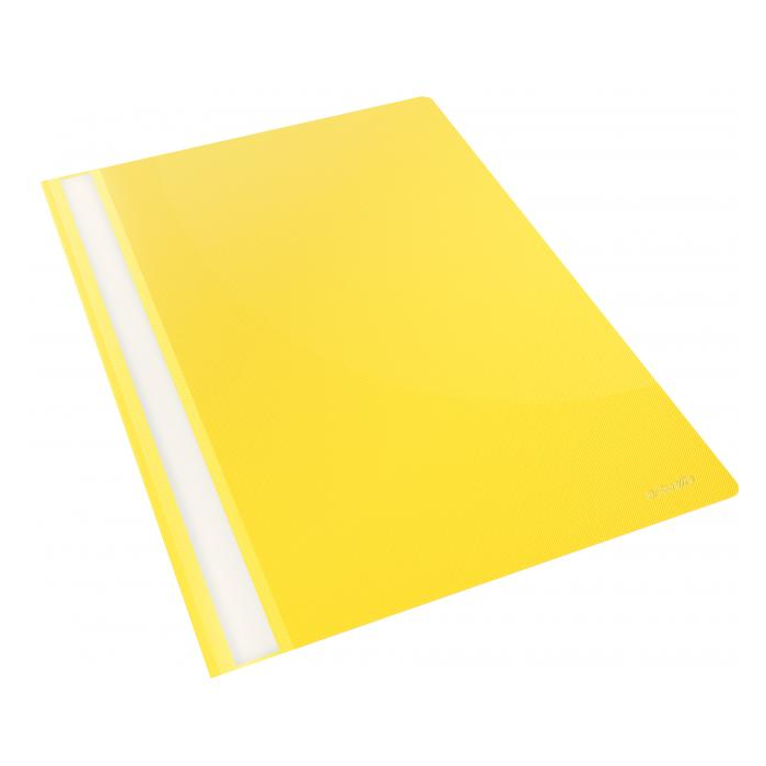 Dosky s rýchloviazačom sú vhodné pre zakladanie dierovaných dokumentov formátu A4. Sú vyrobené z kvalitného polypropylénu, a tým spoľahlivo ochránia vaše dokumenty po dlhú dobu aj pri každodennom používaní. - rýchloviazacia kovová spona pre ľahké založenie dokumentov, ktorými je možné jednoducho listovať - predná priehľadná strana dosiek nezakrýva titulnú stránku vloženej prezentácie či dokumentu - biely papierový zasuvací štítok pozdĺž hrebeňa slúži k označeniu obsahu dosiek - výkroj umožňuje ľahkú výmenu štítku - kapacita: 160 listov formátu A4 (80 g/m2) - v balení 25 ks - farba: žltá
