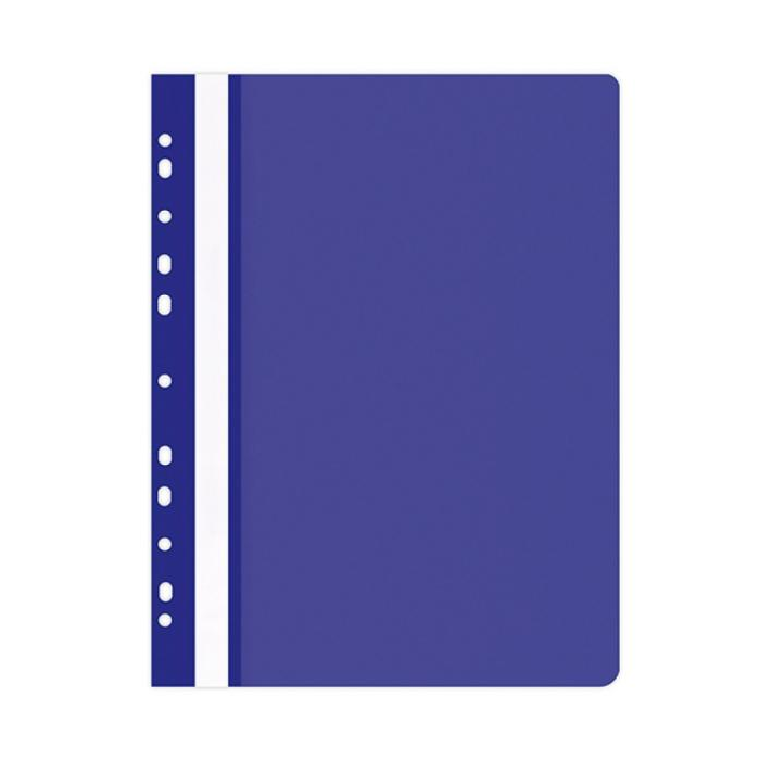 Rýchloviazač PP formátu A4 s priehľadnou prednou stranou a eurodierovaním. Farba matná modrá.