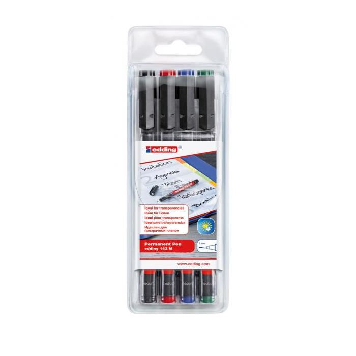 Popisovač na popisovanie fólií na spätnú projekciu. Hrot okrúhly, šírka stopy 1 mm. Sada 4 farieb. Farba: mix 4 farieb Šírka stopy: 1 mm Typ hrotu: okrúhly