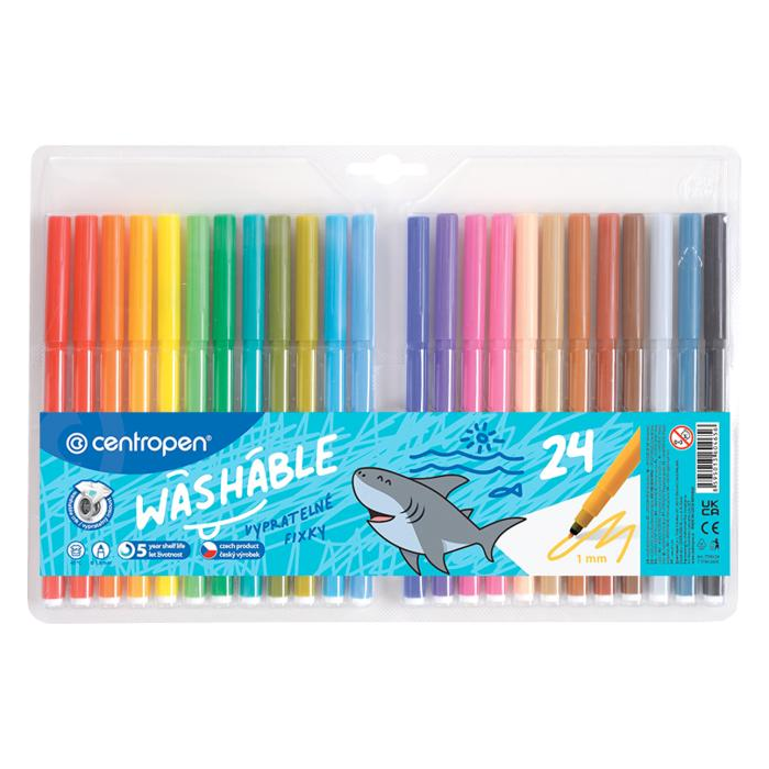 Popisovač plnený zdravotne nezávadným atramentom. Atrament odoláva vyschnutiu až 5 rokov. Materiál PP, ventilačný bezpečnostný uzáver a vláknový hrot odolný voči zatlačeniu. Šírka stopy 1 mm.