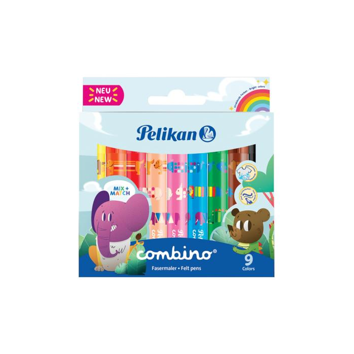 Hrubé popisovače produktovej rady Combino so zvieratkami, ktoré môžete navzájom kombinovať. 9 farieb v papierovej krabičke, balené na blistri.