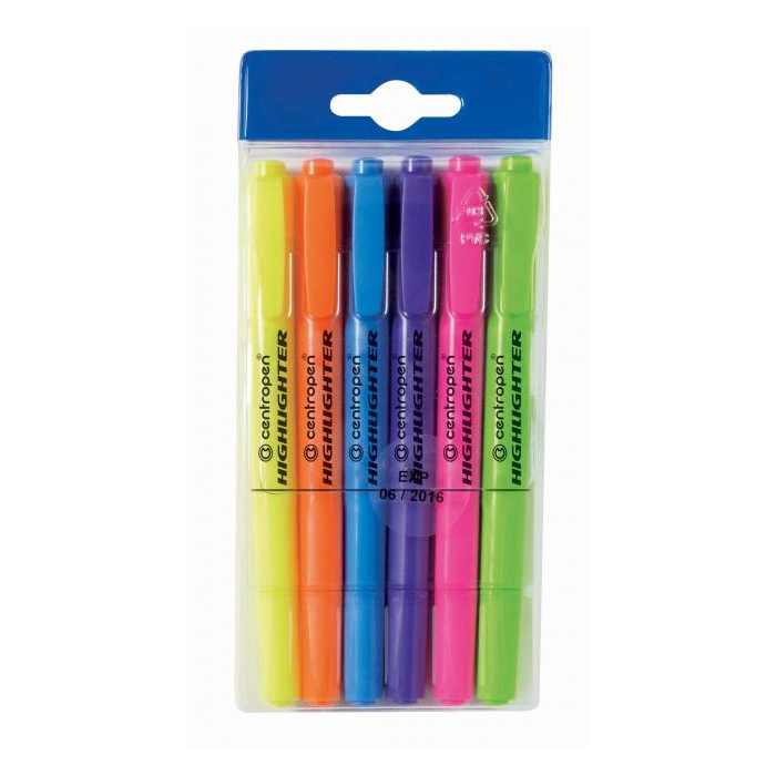 Celofluorescenčný zvýrazňovač s reflexným atramentom vhodným na všetky druhy papiera vrátane faxového a samoprepisovacieho. Šírka stopy 1 - 4 mm. Dodávaný v sade 6 ks.