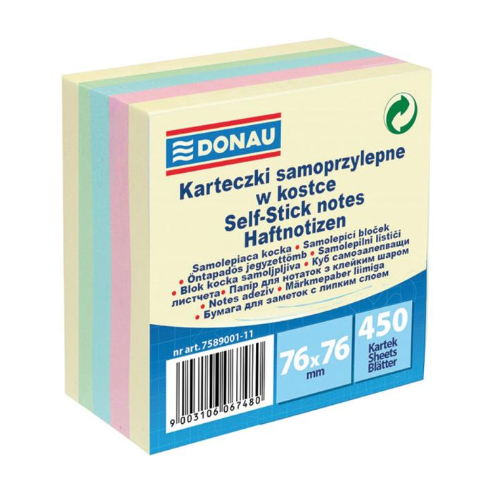 Samolepiaci bloček Donau 5 pastelových farieb 76x76mm 450l