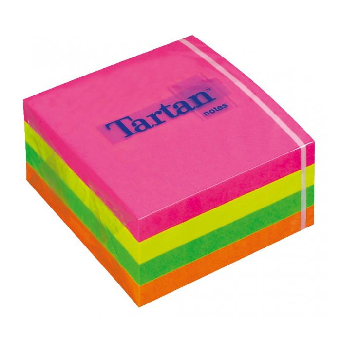 Bločky v tvare kocky v 4 neónových farbách po 100 lístkov: ružová, žltá, zelená, oranžová.