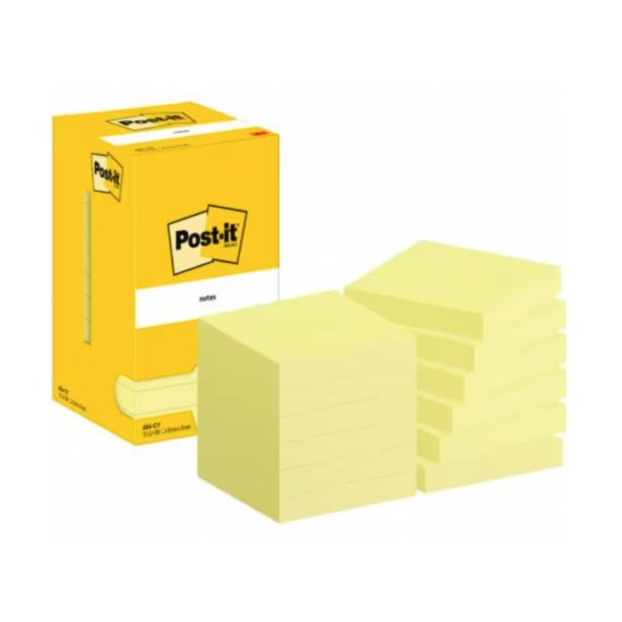 Žlté samolepiace bločky, 100 lístkové, balené po 12ks. Väčšie balenie 12 ks. Samolepiace lístky Post-it odovzdajú Váš odkaz adresátovi jednoducho a presne tam, kde chcete. Ideálne sú aj na písanie Vašich nápadov či poznámok. Sú odolne voči času, nekrútia sa a nezanechávajú na povrchu stopy lepidla.