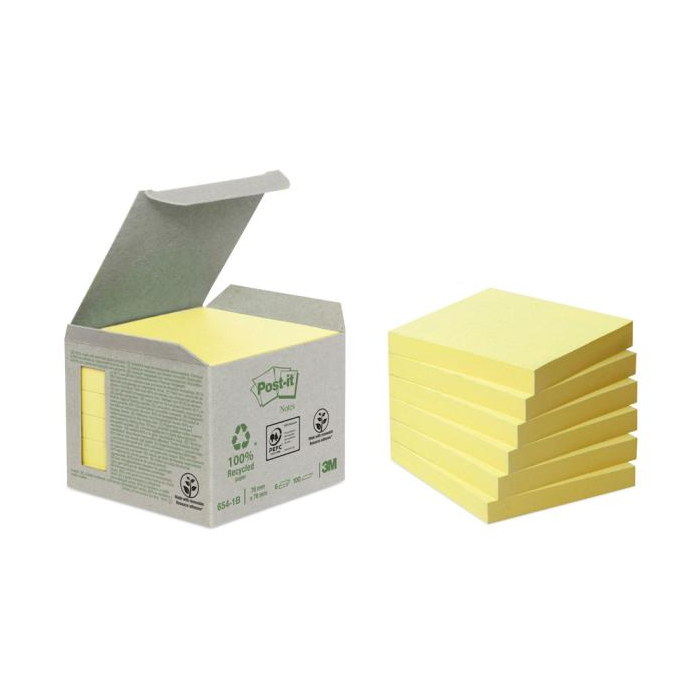 - Post-it® recyklované bločky sú vyrobené zo 100 % recyklovaného papiera a lepidla z obnoviteľných zdrojov.