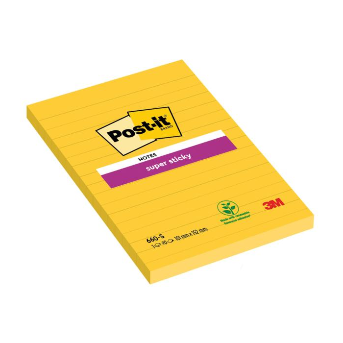 Samolepiaci bloček Post-it Super Sticky, 102x152 mm, žltý, linajky