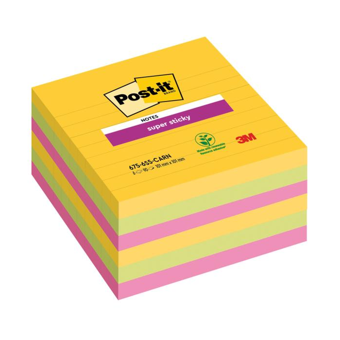 Samolepiaci bloček Post-it Super Sticky CARNIVAL, veľkosť 101x 101 mm, 6 bločkov po 90 lístkov