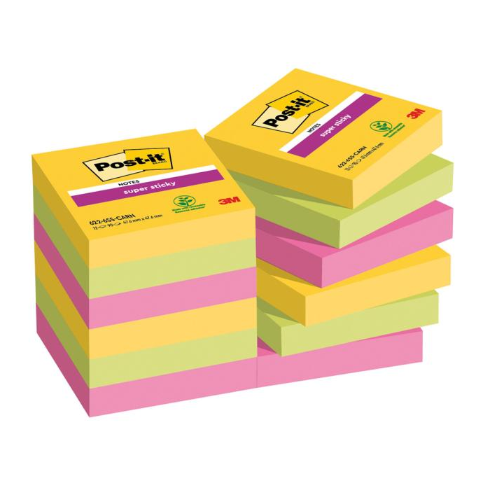 Samolepiaci bloček Post-it Super Sticky CARNIVAL, veľkosť 47,6 x 47,6 mm, 12 bločkov po 90 lístkov