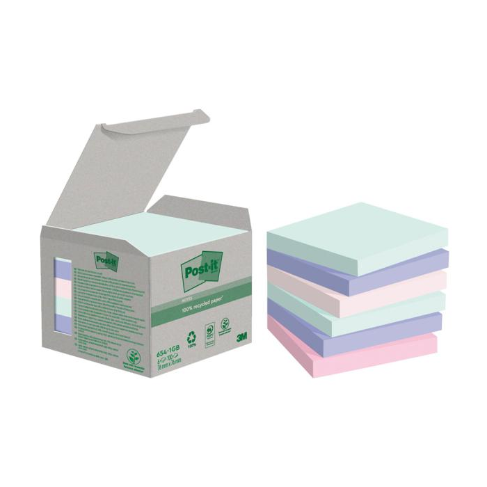 Samolepiaci bloček Post-it Super Sticky NATURE, pastelové farby, veľkosť 76x76 mm, 6 bločkov po 100 lístkov