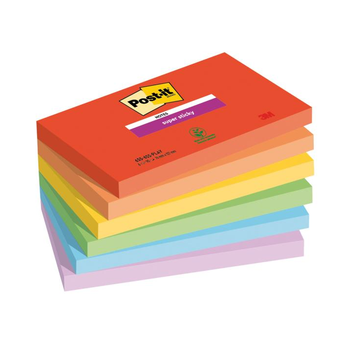 post-it® silne lepiace bločky majú v porovnaní s originálnymi Post-it® bločkami 2 x vyššiu priľnavosť. Sú veľmi pevné, mimoriadne univerzálne a dodávajú sa v rôznych žiarivých a živých farbách, aby na nich všetky informácie alebo odkazy vynikli. Rozmer 76 x 127 mm. Balenie obsahuje 6 bločkov po 90 lístkov.