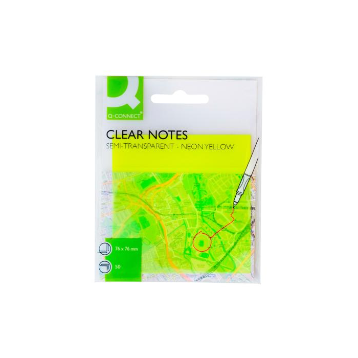Samolepiaci bloček Q-CONNECT priehľadný, žltý, 76 x 76 mm, 50 lístkov