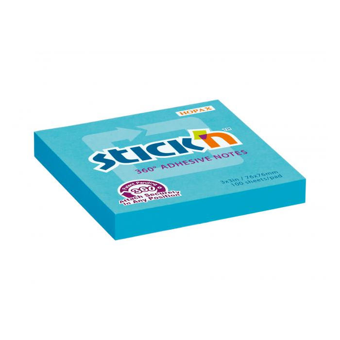 Samolepiaci bloček Stick’n Hopax , 360°, 76x76 mm, modrý
