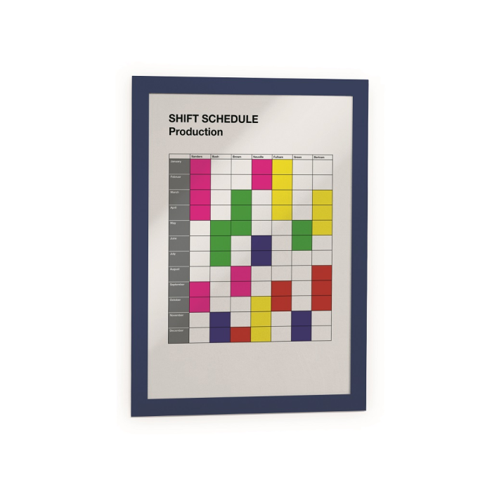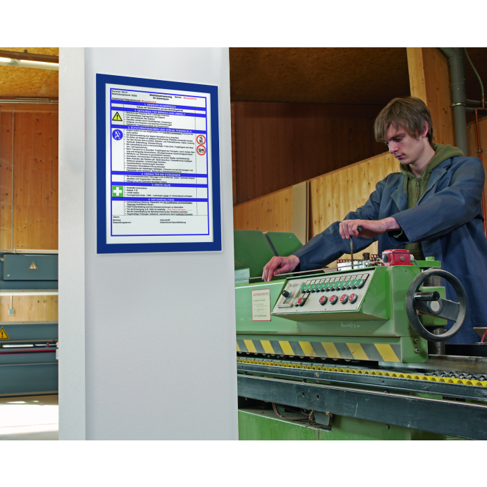 Samolepiaci informačný panel s prednou magnetickou časťou. Ideálny na vystavovanie plagátov, kľúčových informácií, špeciálnych oznamov alebo dôležitých čísel. Informácie sa ľahko vymieňajú a sú čitateľné z oboch strán, ak sa panel umiestni napr. na okno alebo priehľadné dvere. Vhodný na hladké a pevné povrchy. V prípade potreby je ľahko premiestniteľný bez potreby vŕtania. Formát A4, rámik modrý.