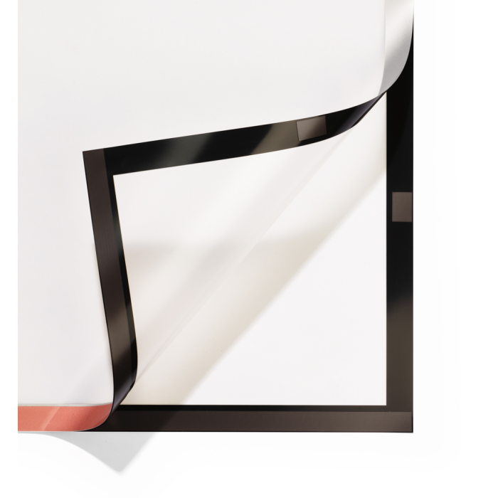 Informačný panel s prednou magnetickou časťou samolepiaci na 2 kratších stranách. „Bezbublinkové“ prevedenie vďaka lepeniu na 2 zo 4 strán. Ideálny na vystavovanie oznamov. Informácie sa ľahko vymieňajú a sú čitateľné z oboch strán. Vhodný na hladké a pevné povrchy. S ochranou voči UV žiareniu. Odoláva teplotám až do 70 °C. Formát A1. Farba strieborná.