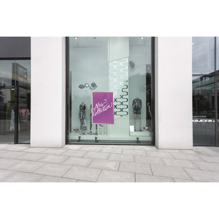 Antistatický informačný panel na prichytenie oznamov na vonkajšie sklá, ktorý sa lepí z vnútornej strany. S ochranou voči UV žiareniu. Odoláva teplotám až do 70 °C. Informácie sa ľahko vymieňajú vďaka magnetickému rámu a sú čitateľné z oboch strán. V prípade potreby je ľahko premiestniteľný. Farba strieborná. Formát 70x100 cm.