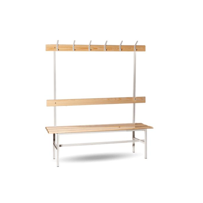 Šatníková lavica obojstranná s opierkou a vešiakmi s dĺžkou 1500 mm.