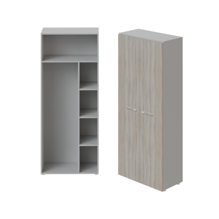 Policové skrine sa vyrábajú z LTD 18 mm v šedej farbe a chrbát je šedý sololak. Skrine sú inštalované na rektifikačné nohy (nastavenie výšky až o 15 mm).