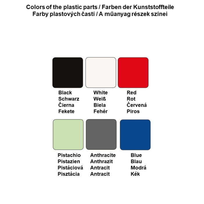 Plastové diely sú dostupné v rôznych farebných prevedeniach, viď. obrázky produktu.