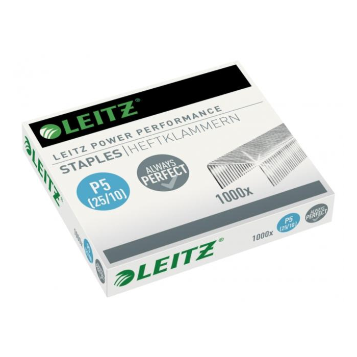 Spinky Leitz Power Performance P5. Kvalitné oceľové spinky 25/10. Odporúčané pre veľkokapacitnú zošívačku Leitz 5552.