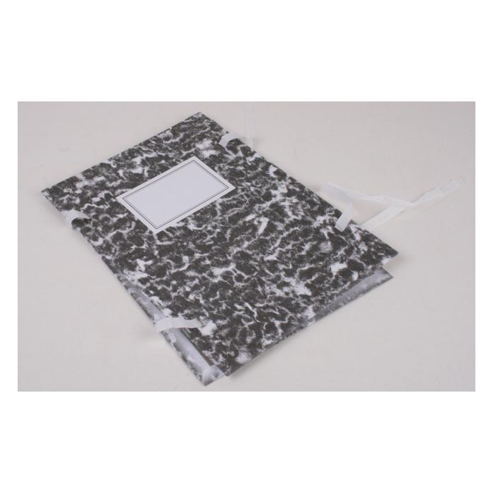 Jednostranne poťahované kartónové dosky bez chrbta zo strojnej lepenky, spojené šnúrkami. Formát A4. Prevedenie mramor. Väčšie balenie 25 ks. Farba: čierno-sivá