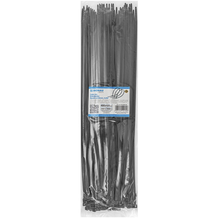 Sťahovacia páska na káble DONAU TECH 400x4.8mm, 100ks, čierna
