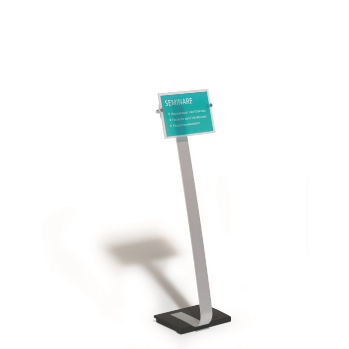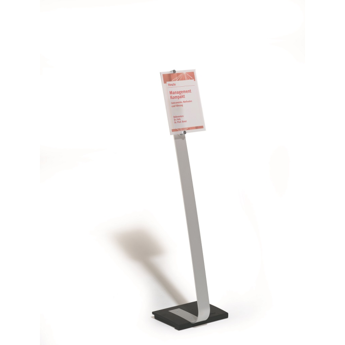 Vysoko kvalitný elegantný hliníkový stojan s informačným panelom Crystal Sign formátu A4,dodávaným s 2 polopriehľadnými výplňami na popis. Použiteľný na výšku alebo na šírku. Zaťaženie stojana a gumové podložky zabezpečujú stabilitu. Protiodrazový panel je možné otočiť vertikálne alebo horizontálne a naklápať v rozmedzí 10 stupňov.Šablóny na potlač sú voľné stiahnuteľné na www.durable.de.
