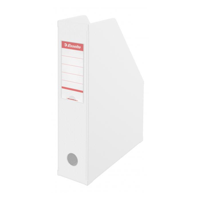Skladací ohybný stojan na materiály do formátu A4 s vymeniteľným popisovateľným papierovým štítkom. S otvorom na chrbte pre ľahké vytiahnutie stojana z rady. Materiál PVC, šírka chrbta 7 cm. Rozmery (š × h) 32 × 24 cm. Balenie 10 ks. Farba: biela Šírka chrbta: 7 cm