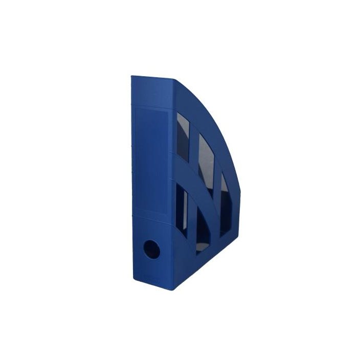 Plastový stojan na časopisy zaoblený dizajn - odolný materiál, miesto na etiketu na chrbte. Farba modrá.
