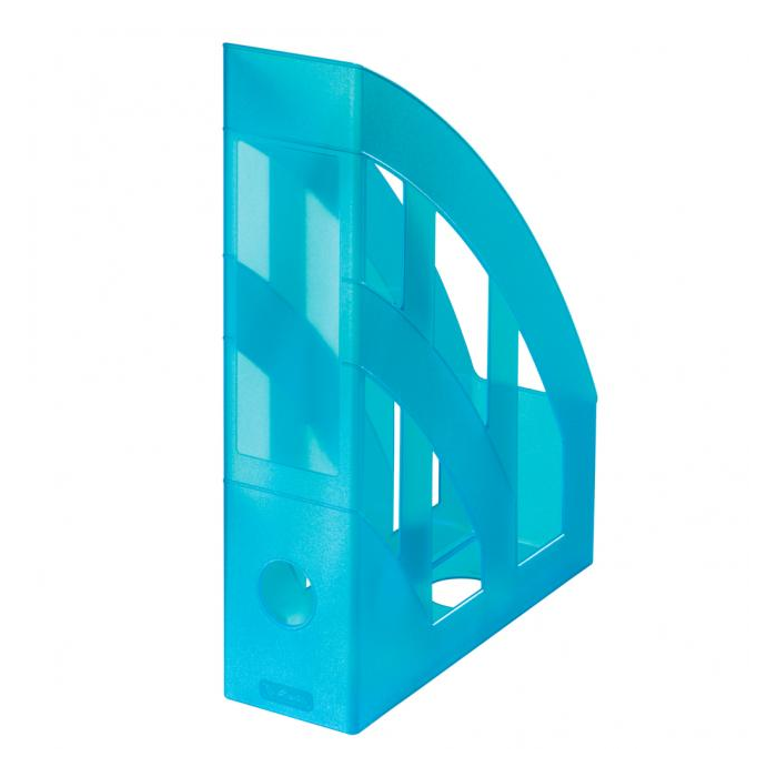 Plastový stojan na časopisy vhodný na ukladanie časopisov, záznamov a katalógov. Miesto na etiketu na chrbte. U priehľadných je materiál Polystyrol, plast odolný voči nárazom. Pre formát DIN A4 až C4. Väčšie balenie 4 ks. Farba priehľadná tyrkysová.
