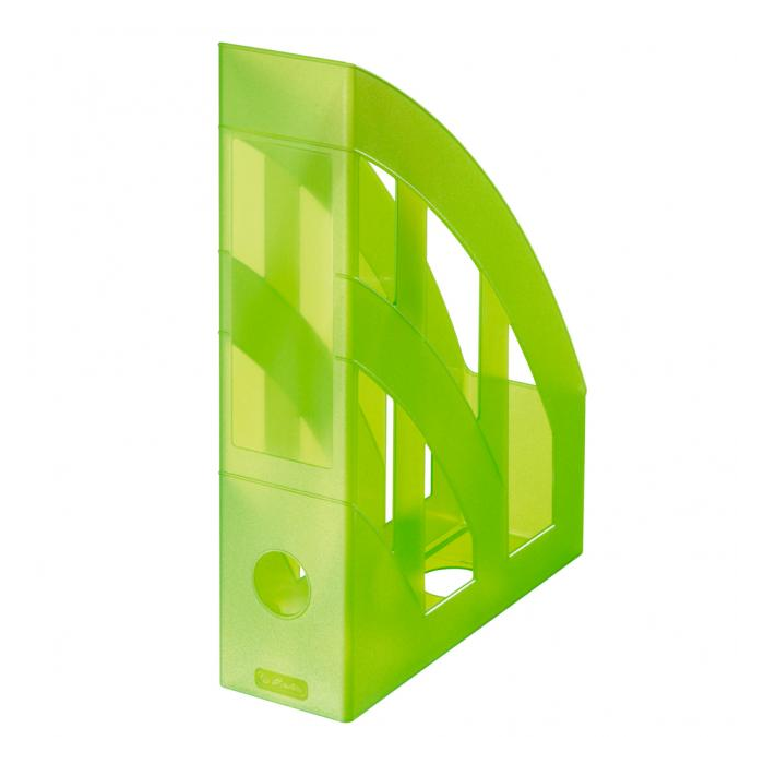 Plastový stojan na časopisy vhodný na ukladanie časopisov, záznamov a katalógov. Etiketa na chrbte. U priehľadných je materiál Polystyrol, plast odolný voči nárazom. Pre formát DIN A4 až C4. Väčšie balenie 4 ks. Farba priehľadná zelená.